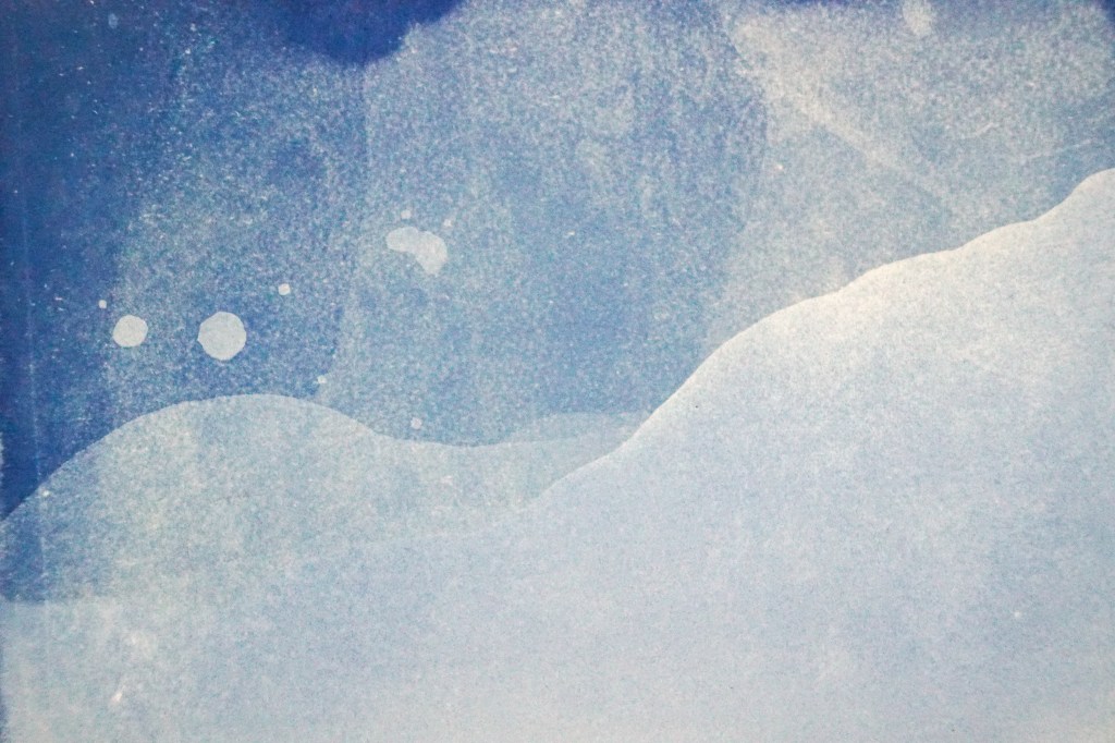 [Cyanotypes of moving water – a performative action directly processed on watercolour paper at the edge of the Atlantic Ocean by Moroccan Sunshine]